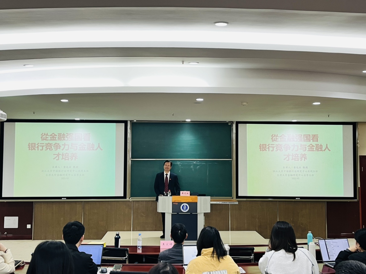 3月25日下午,浙江大学中国银行业研究中心共同主任、台湾大学金融研究中心名誉主任黄达业教授应公司邀请在B201报告厅作了题为“从金融强国看银行竞争力与金融人才培养”的学术讲座。讲座由太阳成tyc7111cc王定祥教授主持,公司60余名师生参加了此次讲座。