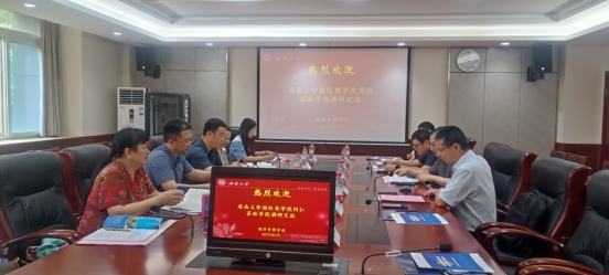 6月23日上午海南大学国际商公司付景涛副经理一行6人莅临公司交流座谈。太阳成tyc7111cc副经理黄庆华、财政金融系副系主任沈冰、MPAcc中心主任刘向强、MBA中执行主任金绍荣、农业专硕中心主任尹朝静等出席交流座谈会。