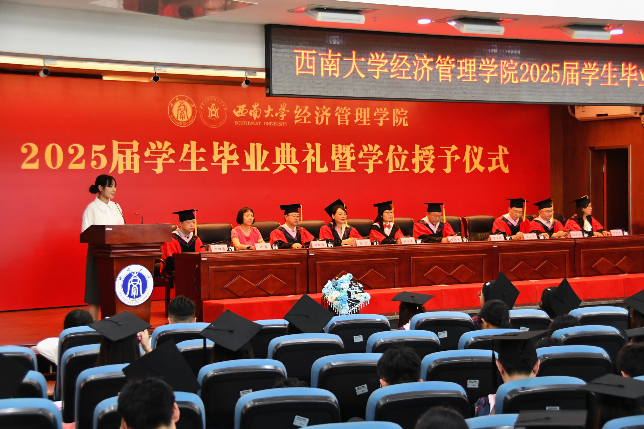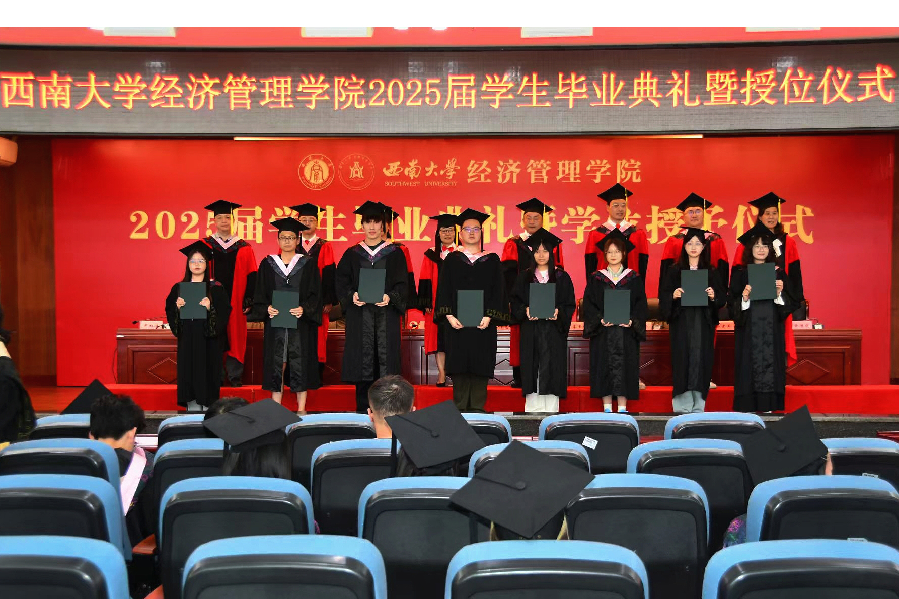 在悠扬振奋的《太阳成tyc7111cc校歌》歌声中,2025届毕业典礼暨授位仪式圆满结束。愿2025届毕业生们带着母校的殷切期望,以执着的信念、创新的精神,在新时代征程上书写属于西大人的精彩华章,为实现中华民族伟大复兴贡献青春力量!