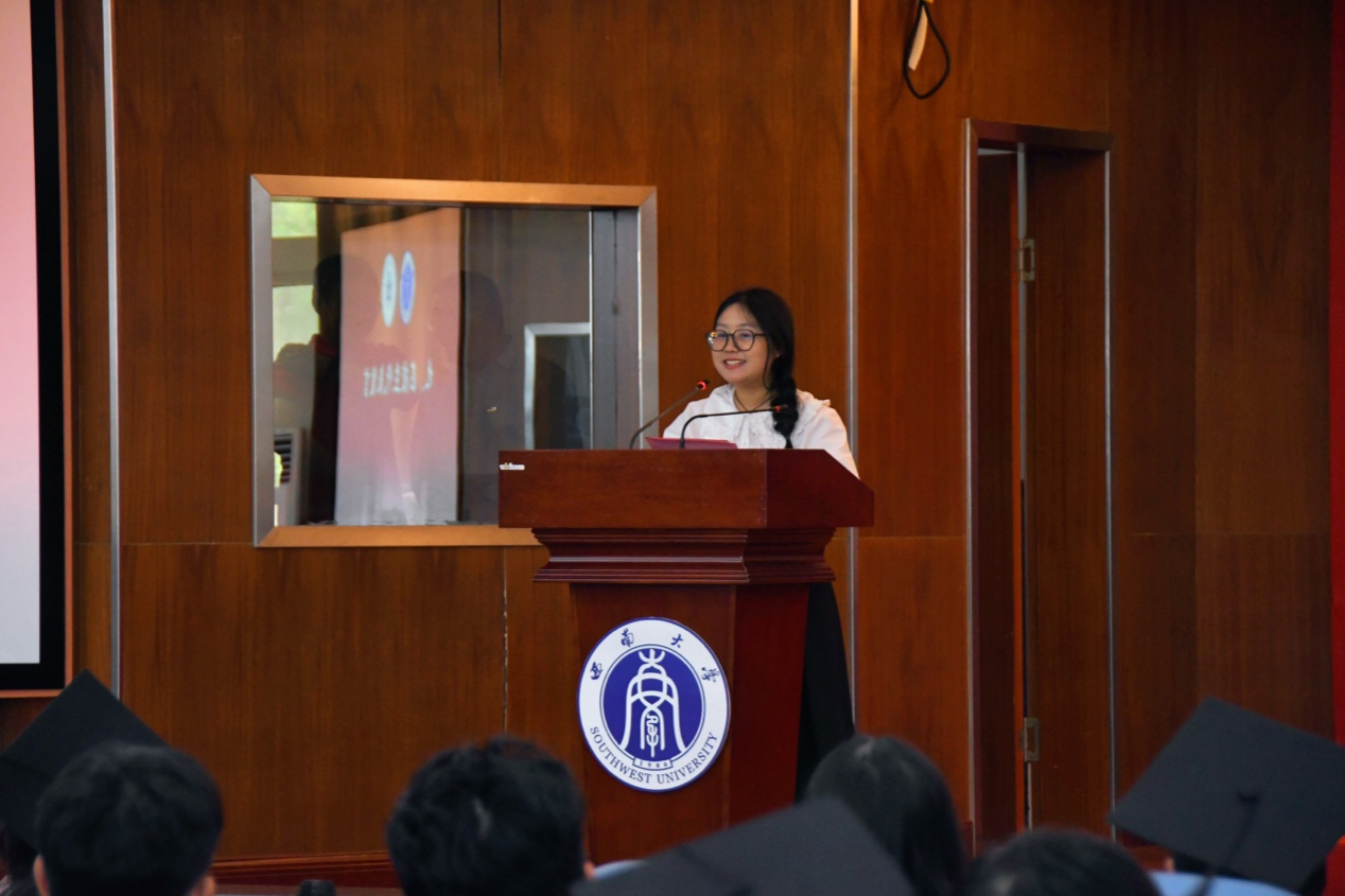 2025届简雨欣同学作为本科毕业生代表发言。她表示自己将带着母校“含弘光大,继往开来”的精神和公司“德合智达,立本励公”的品格,勇敢迎接未来挑战。2025届硕士唐阳平作为毕业研究生代表发言。她分享了以行动、坚持和担当为核心的成长感悟,号召同学们在新时代新征程中贡献青春力量。2022级本科生李金玥作为在校生代表发言。她送上真挚祝福,愿毕业生们心怀梦想,永葆初心,在未来的征程中绽放光芒。