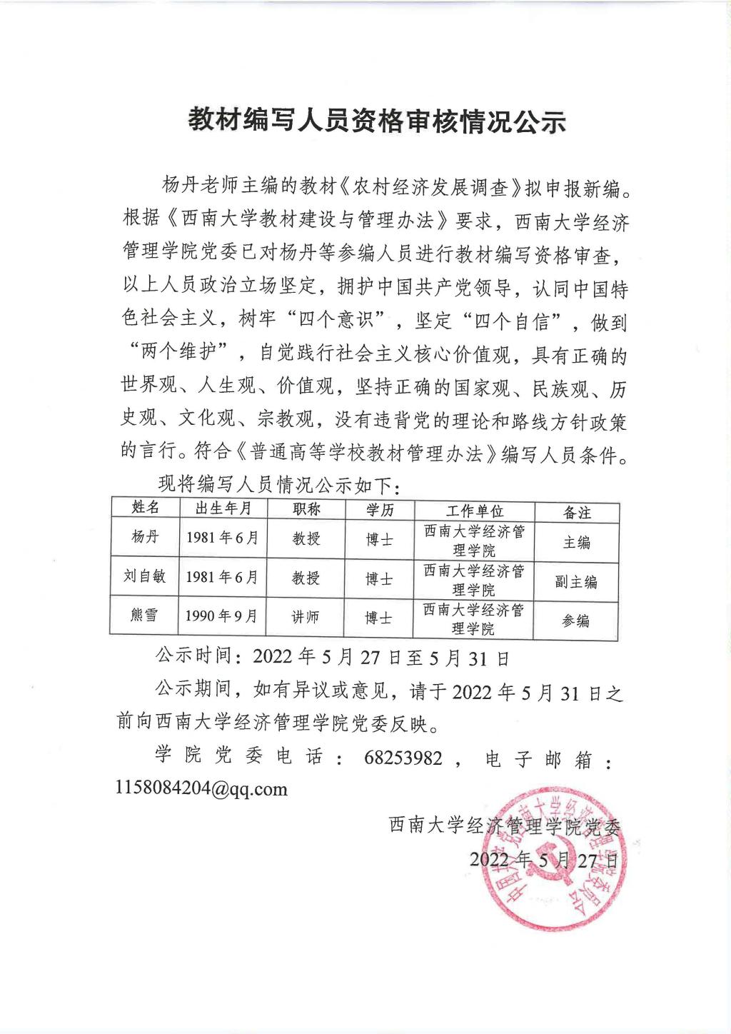 教材编写人员资格审核情况公示