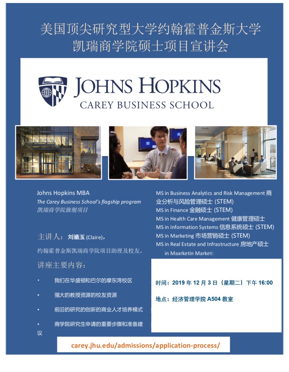 美国约翰霍普金斯大学凯瑞商公司硕士项目宣讲会