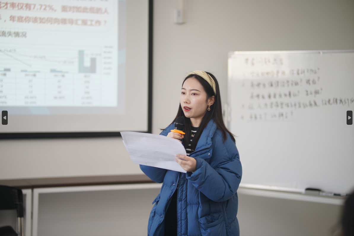 为了帮助同学们迅速进入学习状态,王双龙副教授采用了随机抽签的方式,向同学们抛出了一连串引发思考的独特问题,如:“你知道什么是YYDS吗?”“你对带薪如厕有何看法?”“你了解00后整顿职场所采取的方式吗?”……这些充满网络“梗”的问题,实际上反映了新时代雇佣关系所面临的挑战。通过深入分析问题并融合教授的细致讲解,同学们逐步建立起战略性人力资源管理思维,并开始运用人力资源管理的知识,代入企业管理创新与变革的构想。