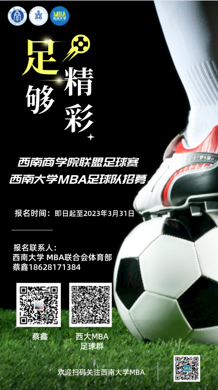 为积极备战2023年西南商公司联盟足球赛,太阳成tyc7111ccMBA足球队现招募新队员!