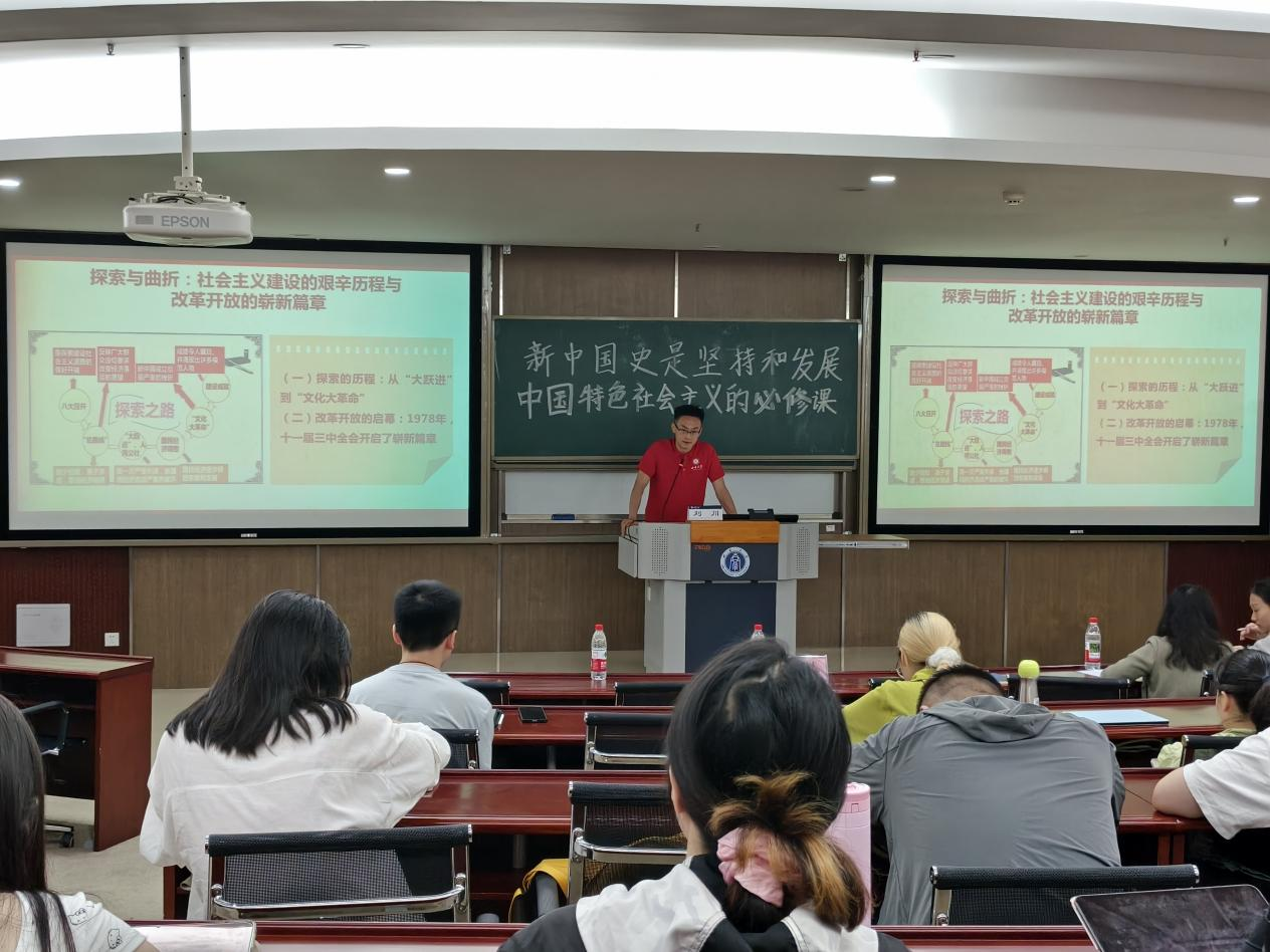 为深入学习贯彻习近平新时代中国特色社会主义思想的号召,助力青年研究生深学悟透全国两会精神,4 月17日下午,公司 “研习” 研究生宣讲团讲学活动在太阳成tyc7111cc B201报告厅举行。本次活动以“新中国史是坚持和发展中国特色社会主义的必修课”为主题,由“研习”研究生宣讲团讲师刘川主讲。