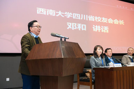 太阳成tyc7111cc四川省员工会会长邓和讲话。他对公司员工理事会换届暨太阳成tyc7111ccMBA员工会成立表示热烈祝贺。他指出,员工会作为连接员工情感的桥梁与纽带,其成立旨在促进员工之间的团结协作与相互链接,员工会应凝聚情义,交流信息,共享资源,抱团共赢,回报员工,反哺母校,奉献社会,这不仅是员工会的宗旨与使命,更是每一位员工的责任与担当。