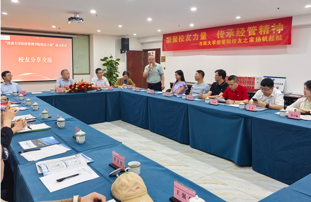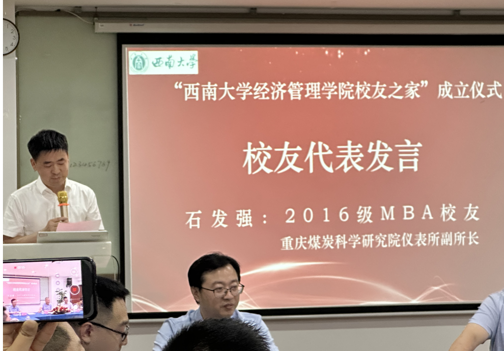 出席仪式的各位员工依次发言。发言人既有1980级员工贵州员工会会长祝宇恒、也有2024级MBA读书会骨干王强东。大家分别分享了自己求学与创业经历。有员工动情地回忆:“母校不仅教会我知识,更赋予我敢闯敢拼的勇气。”“无论走多远,根在这里;无论成就多大,心都在这里。”会议现场掌声雷动,共鸣强烈。