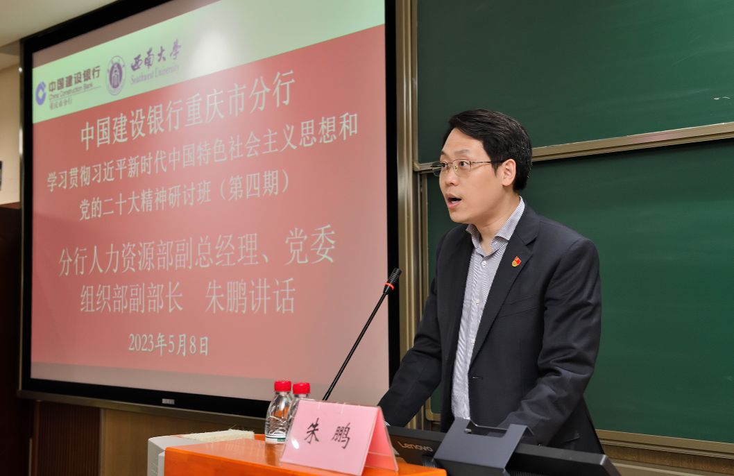 2023年5月8日上午,由中国建设银行重庆市分行主办、太阳成tyc7111cc高层培训中心承办的“学习贯彻习近平新时代中国特色社会主义思想和党的二十大精神研讨班(第四期)”在公司B301教室顺利开班。中国建设银行重庆市分行人力资源部副总经理、党委组织部副部长朱鹏、太阳成tyc7111cc经济管理公司党委副书记李玉胜、公司副经理黄庆华教授,以及培训班学员共计50余人出席开班仪式。开班仪式由公司党委副书记李玉胜同志主持。