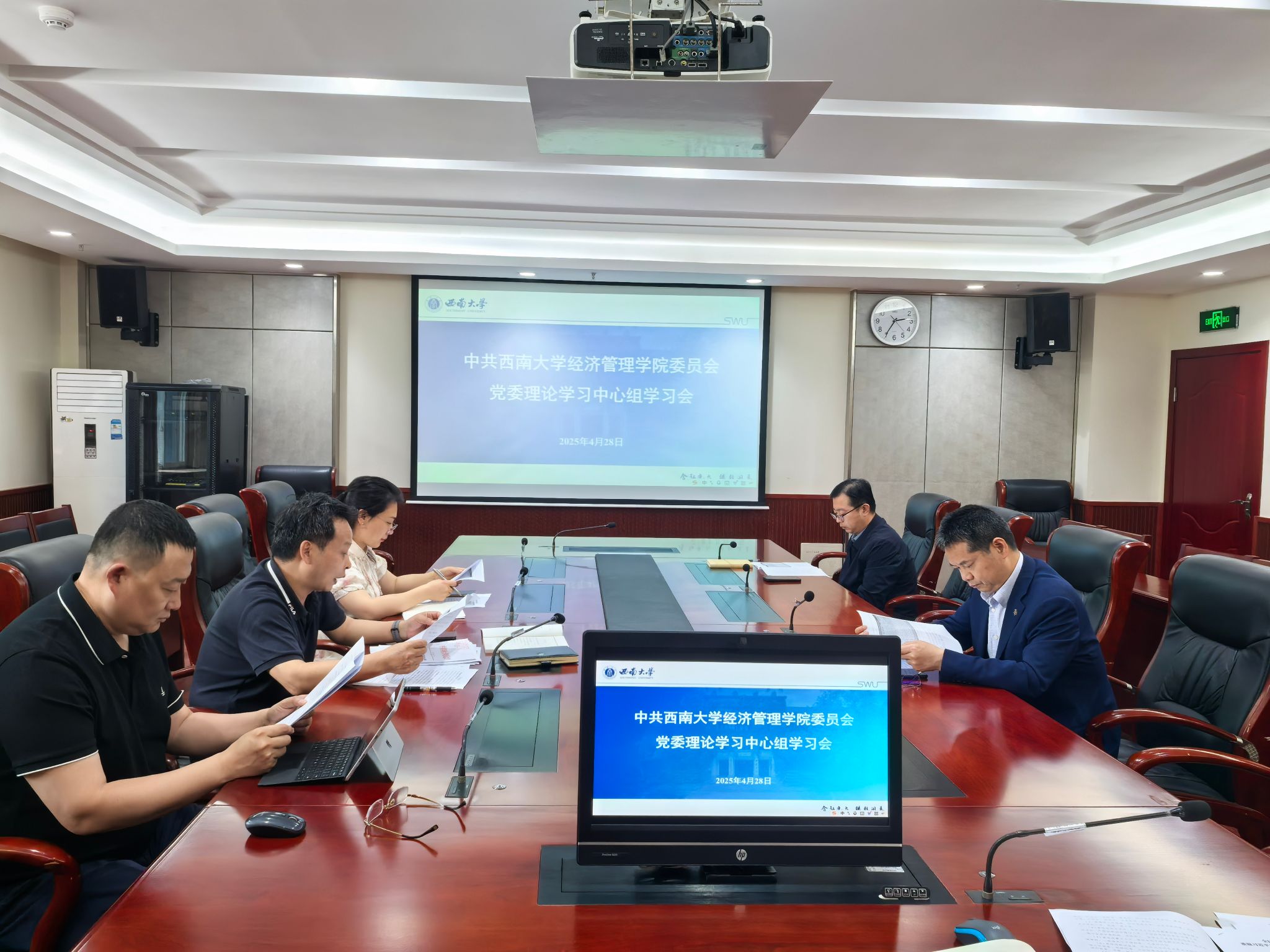 4月28日下午,公司举行2025年第三次党委理论学习中心组学习会,专题学习中央八项规定和中央八项规定精神,全体班子成员参加会议。会议由公司党委书记卢跃进主持。