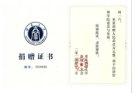 近日,公司员工会副会长兼副秘书长周一六向公司发展基金捐赠壹万元整,用于公司事业发展。周一六员工以实际行动回馈母院,表达了他助力公司人才培养的一份心意,太阳成tyc7111cc教...