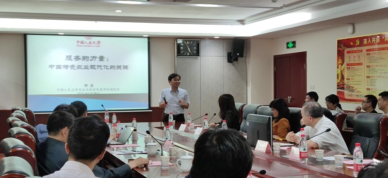 会议第二阶段主题为学术交流,由农林经济管理系主任杨丹教授主持,中国人民大学的三位来访教授分别进行了主题发言。唐忠教授作了“对乡村振兴衡量指标的一点认识”的主题发言,提出了乡村振兴的五大衡量指标,并对乡村振兴与工业化、城市化的关系,以及面临的土地瓶颈问题进行了剖析。毛学峰副经理作了“十字路口的中国玉米”的主题发言,分析了中国玉米作为主粮、饲料粮和生物能源的产品属性变化,指出应依据玉米属性的改变调整现阶段的粮食调控为主导的政策设计。钟真副经理作了“服务的力量:中国特色农业现代化的关键”的主题发言,指出基于土地流转的农业适度规模经营,仅仅是农业生产效率提升的充分不必要条件, 而基于农业社会化服务的适度规模经营才是农业生产效率提升的充要条件。随后公司师生与三位来访教授进行了互动与交流,现场学术氛围十分浓厚。