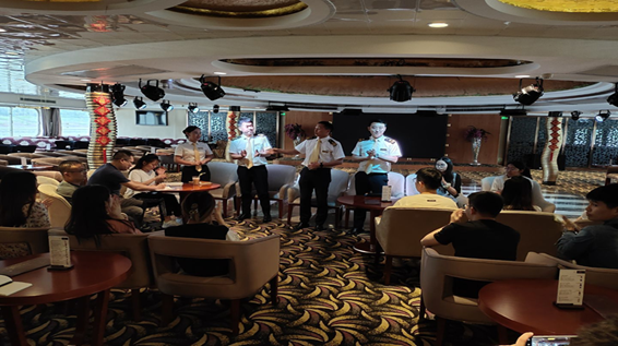 依据专业课程综合实习教学计划,此次实习着重考察景区导游、游轮服务等岗位的工作流程、工作任务、服务技能等,以及旅游新业态、线路规划与设计等专业内容。在长江黄金游轮公司的精心安排下,旅游管理专业师生考察了丰都鬼城、白帝城等景点发展实际以及导游服务等的具体流程,全面参观考察了长江游轮的设施与运营,参加了游轮公司专门组织的高级管理人员职业经验分享与专业互动交流会。通过考察,同学们增强了对旅游接待业、旅行社与导游业务、景区与目的地运营管理、酒店前厅与客房服务与管理等相关课程的实践认知。