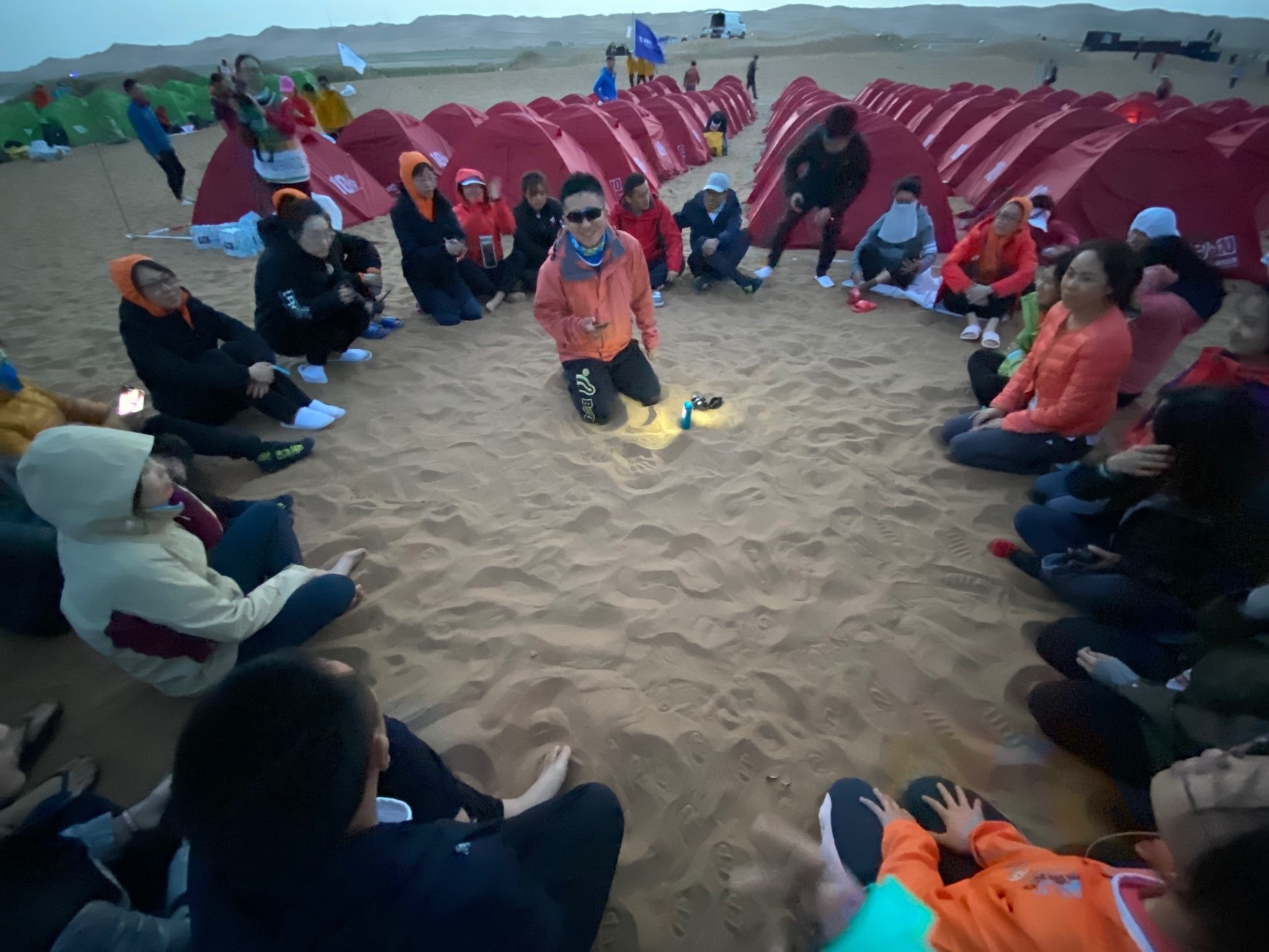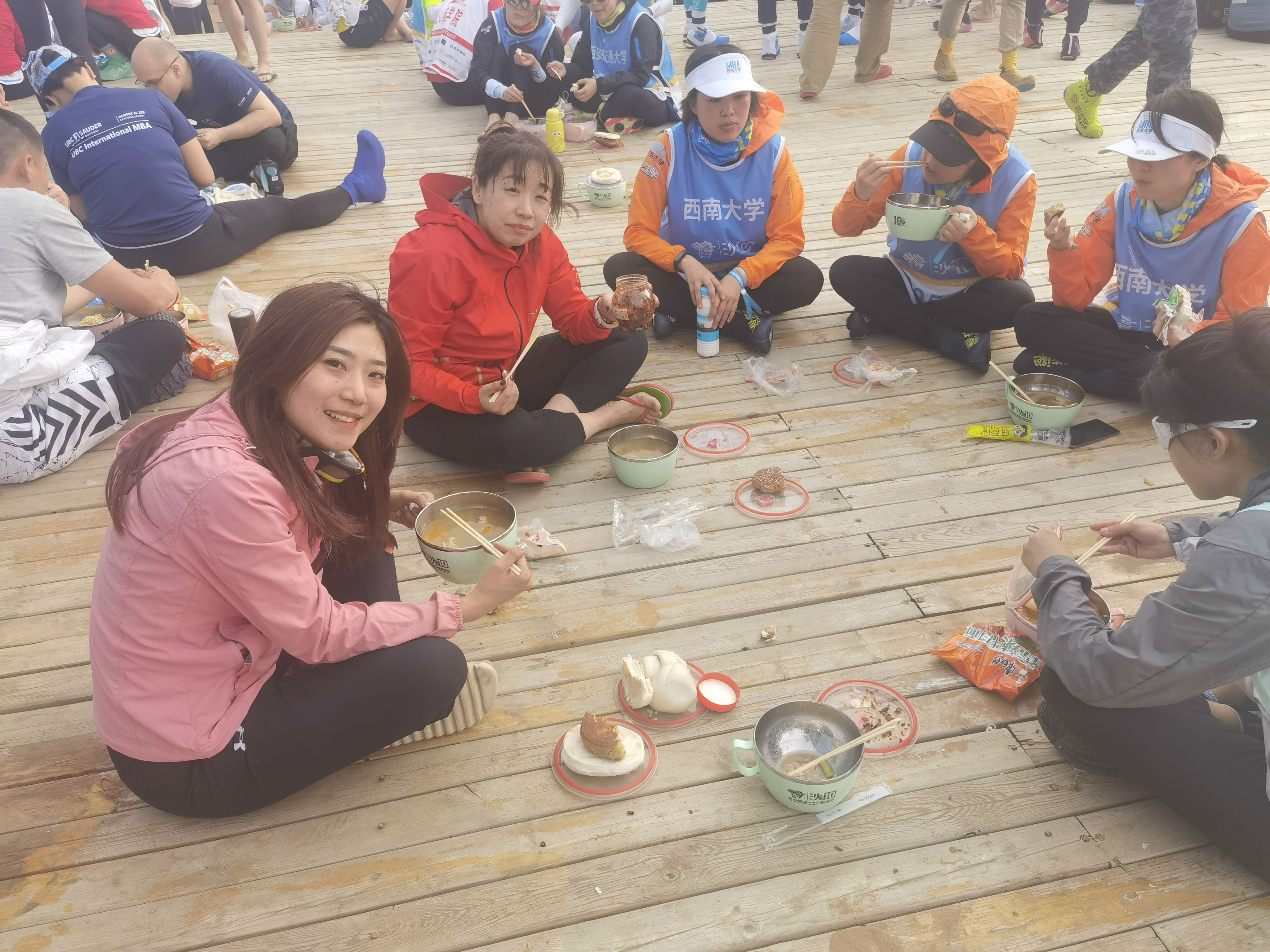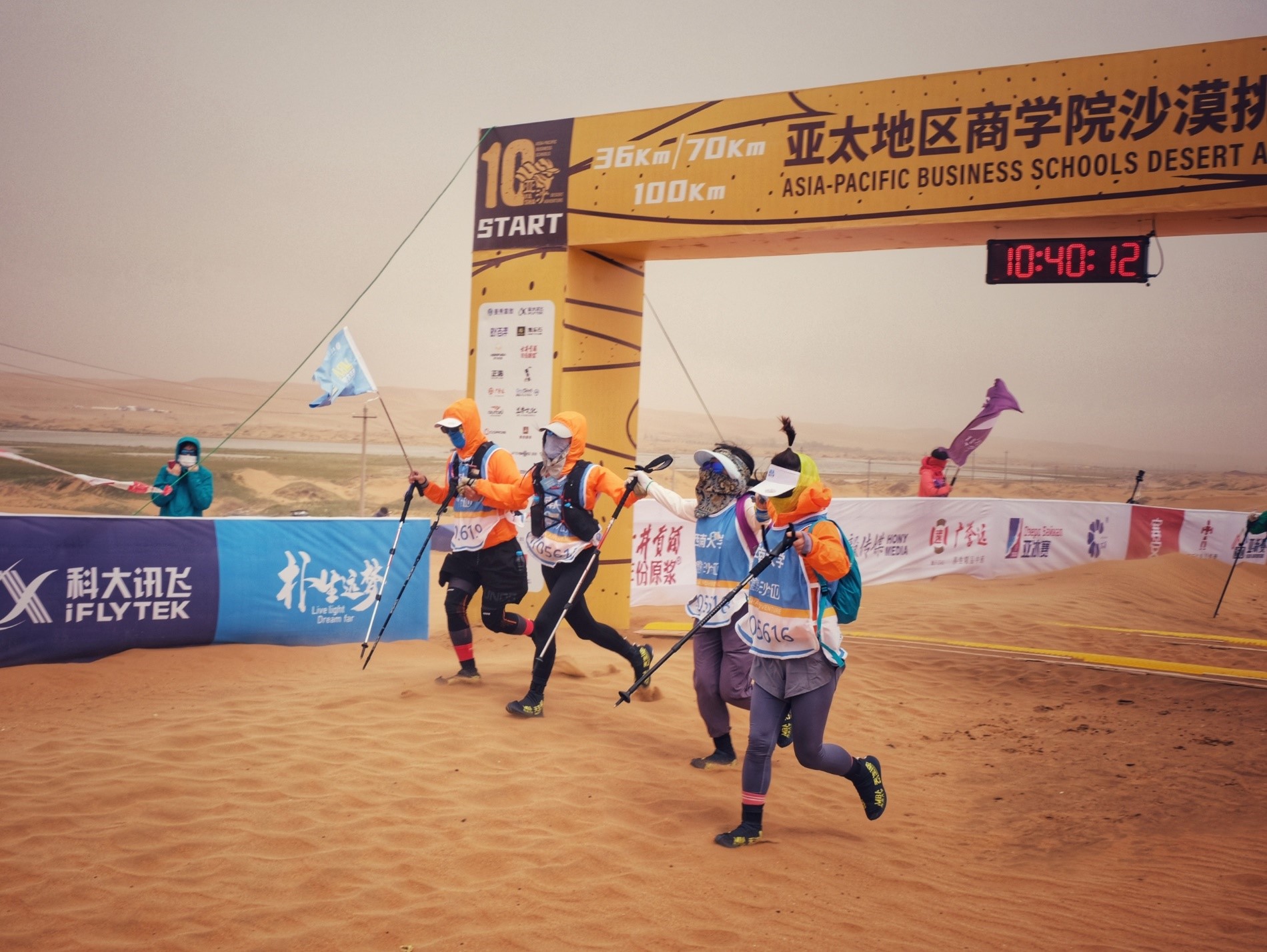 5月3日凌晨,营地刮起了巨大的风,队员们都在飘摇的帐篷中休息,渐渐有了一些咳嗽声,每个队员心中都多少有些紧张,担心次日本身就加强难度的赛程会被恶劣天气进一步干扰。但是没有什么困难是团队们不能克服的。虽然这一天狂风大作,气温骤降,我们的队员还是以非常优异的成绩完成了当日比赛。亚沙赛中流传一句话:“亚沙一次,沙友一生”——携手一同冲过终点线的情谊是值得一生铭记的。