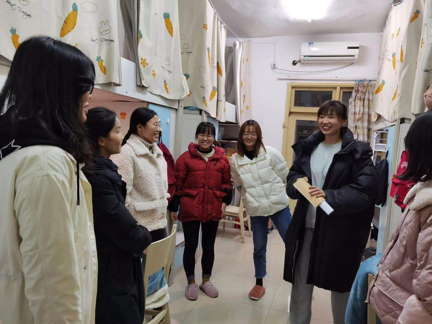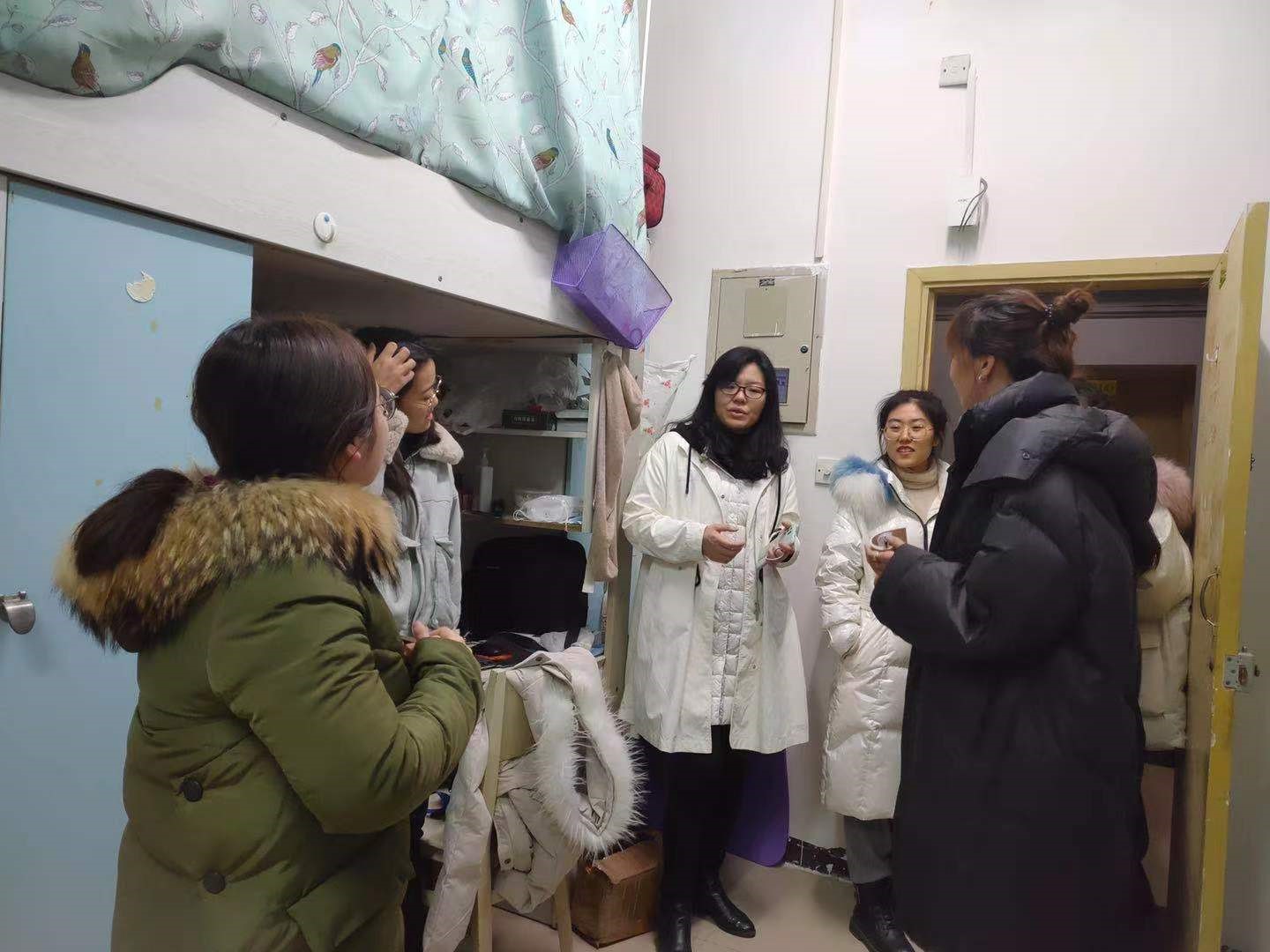 近日,公司党委副书记田丽、兼职辅导员钱璐以及专硕班主任李宁、陈思洁、熊雪、张列柯、曹慧深入公司研究生寝室,询问同学们生活和学习情况,和同学们聊聊家常,为同学们期末复习加油鼓劲。在寒冷的冬夜里,老师们给公司研究生寝室带来了温暖和关心。