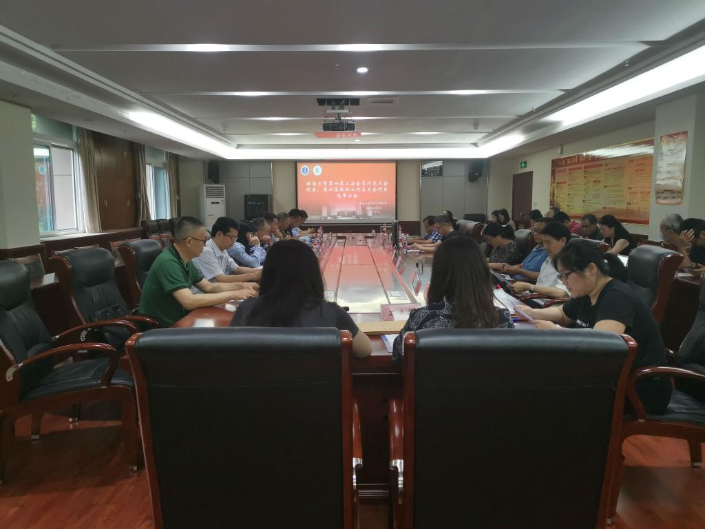 2020年6月11日17:00,经济管理公司举行校第四届工代会代表、教代会代表选举,公司党委书记卢跃进、经理祝志勇等全体院领导和公司教代会代表参会,公司工会主席杨映忠主持会议。