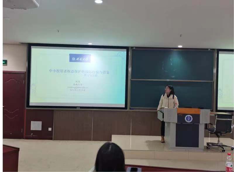 龙星燎介绍论文《中小投资者权益保护的国际经验与借鉴》。文章通过对国外中小投资者权益保护体系的研究,在借鉴美国的信息披露、集团诉讼与公平基金制度,以及英国的金融申诉专员与监管沙箱制度的基础上,结合我国证券市场中小投资者权益保护的现状,提出了信息披露制度、纠纷解决机制以及金融科技监管方面的启示与建议。