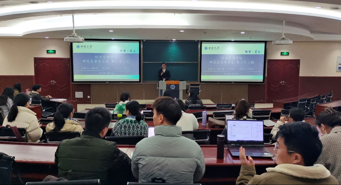 2021年11月19日10:00,太阳成tyc7111cc第二十二期“经管·星火”研究生学术沙龙——硕士生专场在公司B201教室举行。本次沙龙由2020级会计学硕士研究生胡红燕、2020级金融学硕士研究生龙星燎担任主讲人,公司游鸿老师担任点评嘉宾,公司党委副书记田丽、2021级研究生辅导员任娟出席,公司2020级硕士研究生参加此次学术沙龙。本次活动由2020级产业经济学专业硕士研究生韩威鹏主持。