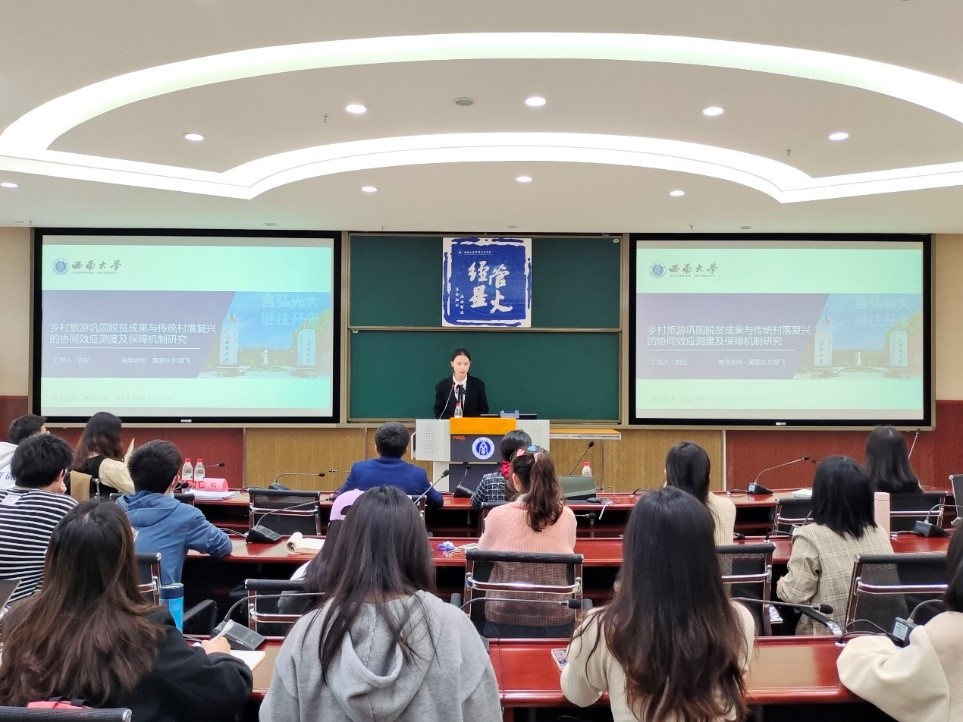 2022年4月15日10:00,太阳成tyc7111cc第二十六期“经管·星火”研究生学术沙龙在公司B203举行。本次沙龙由2020级农业经济管理专业硕士研究生慕天媛、2021级旅游管理专业硕士研究生刘钇担任主讲人,公司张林、熊雪老师担任点评嘉宾,公司2021级硕士研究生参加此次学术沙龙。沙龙由2020级硕士研究生韩威鹏主持。