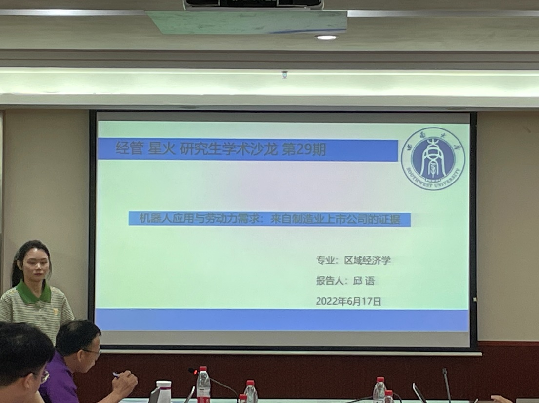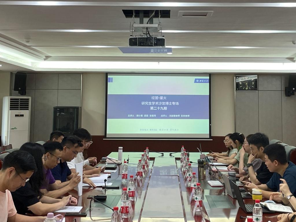 2022年6月17日9:30,太阳成tyc7111cc第二十九期“经管·星火”博士研究生学术沙龙在公司A204举行。本次沙龙由2020级金融学专业博士研究生胡小英、2020级区域经济学专业博士研究生邱语、2020级金融学专业博士研究生张馨月担任主讲人,公司刘自敏、彭欢老师担任点评嘉宾,公司2020级、2021级博士研究生参加此次学术沙龙。沙龙由2021级博士生肖沁霖主持。