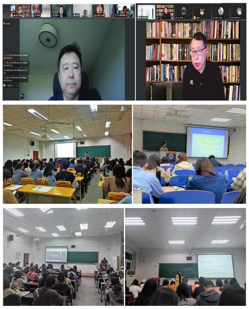 2022年在3月、4月和7月,太阳成tyc7111cc先后邀请来自加拿大麦科文大学(MacEwan University)的魏小军教授、美国西卡罗莱纳大学(Western Carolina University)的陈海洋教授,以及美国密苏里州立大学(Missouri State University)的Kenneth H. Brown教授和David M. Mitchell教授为全校员工开设了“国际商务案例研究(Case Studies in International Business)”、“公司金融学(Corporate Finance)”、“微观经济学(Microeconomics)”和“宏观经济学(Macroeconomics)”。这四门国际课程采用“线上直播”或“云端视频教程 + 线下课程辅导”模式讲授,吸引了来自全校十余个公司、多个年级和多个专业的500余名选课同学。