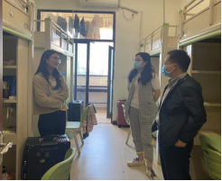 在走访过程中,卢跃进仔细地询问了新生报到后的学习和生活情况,耐心地解答了新生们提出的问题。“家是哪里的?”“饮食是否还习惯?”“如果有问题和困难,及时向老师反映。”一句句关心的话语让同学们倍感亲切和温暖。田丽强调,近期国内疫情形势严峻,同学们要时刻关注公司的疫情防控政策,切实做好个人防护,在疫情防控期间养成良好的学习生活习惯和积极的心理状态。