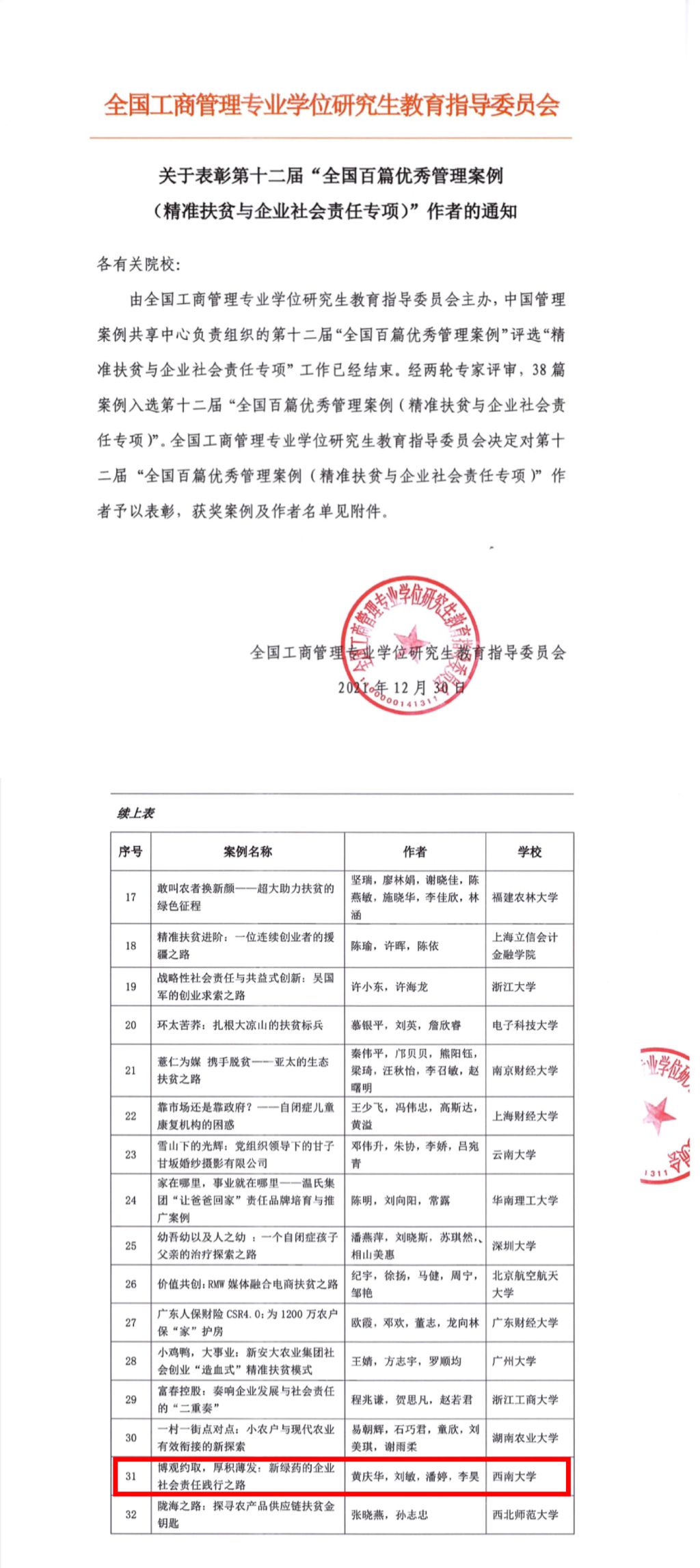“全国百篇优秀管理案例”评选由全国工商管理专业学位研究生教育指导委员会(以下简称“全国MBA教指委”)主办,是中国管理案例的最高奖项。