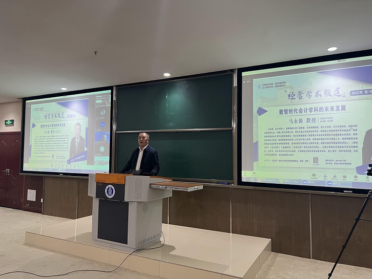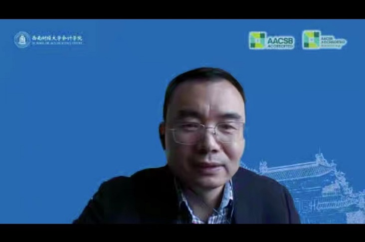 2022年10月26日,西南财经大学会计公司经理马永强教授应邀在线为学院师生作了题为“数智时代会计学科的未来发展”的学术讲座。讲座由公司经理祝志勇教授与副经理高远东教授共同主持。