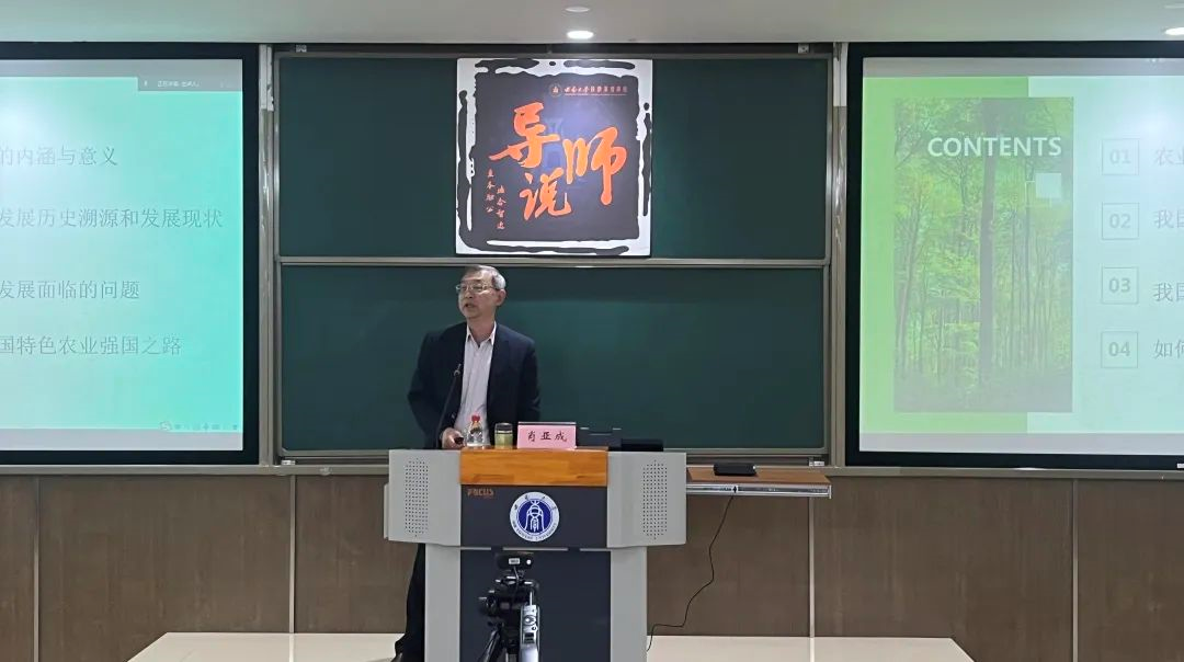 肖亚成教授首先提到了农业强国的内涵与意义,认为我国应当基于国情特色,以供给保障强、科技装备强、经营体系强、产业韧性强、竞争能力强为目标进行农业强国建设,同时分析了我国由原始农业到传统农业再到现代农业的演变历史,以及顺应我国农业现代化基本趋势的发展现状。随后,他阐述了我国农业发展面临农村科技创新能力弱、农业基础设施较差、缺乏高质量的农业劳动力等问题。最后,肖老师对于如何走中国特色农业强国之路提出建议,并探讨利用相应体制机制来保障各项重点任务的完成。