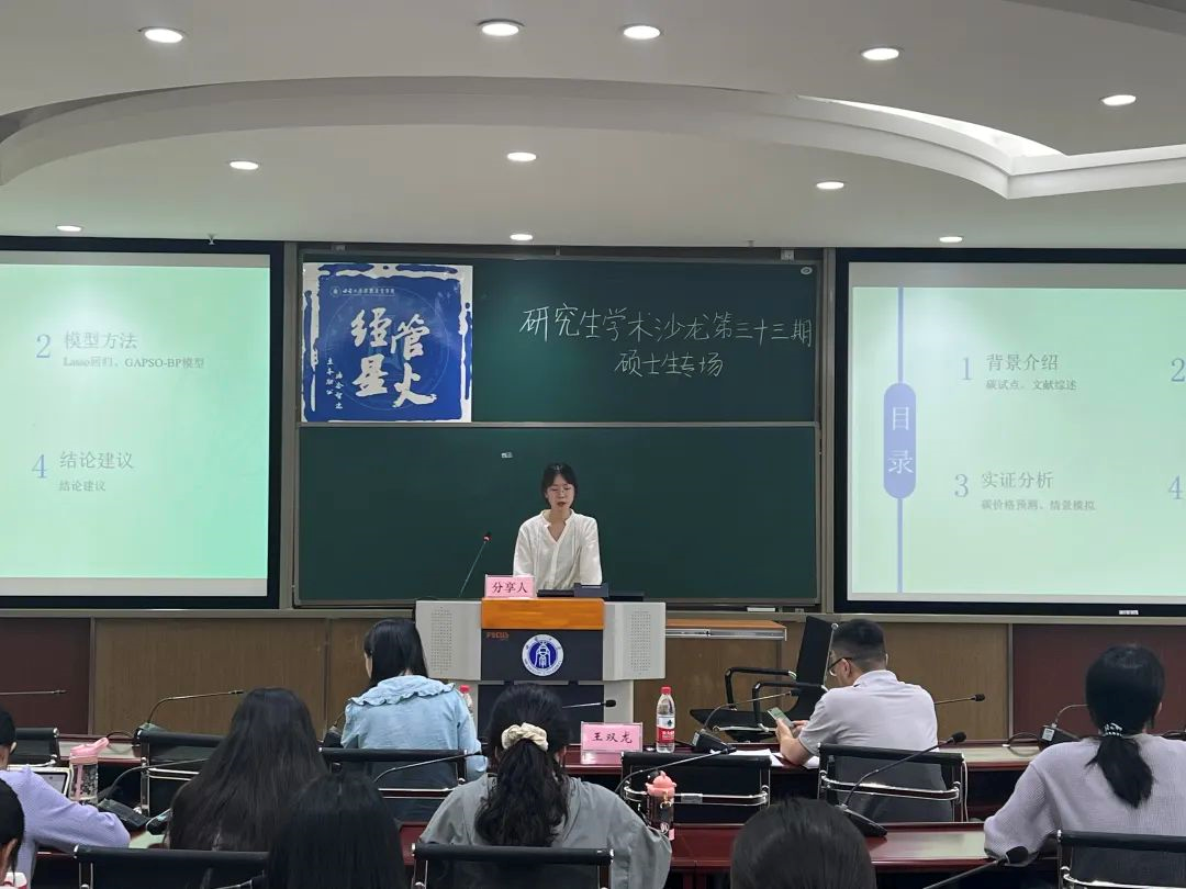 2023年4月21日下午,太阳成tyc7111cc第三十三期“经管·星火”研究生学术沙龙——硕士生专场在公司B204教室举行。本次沙龙由2021级企业管理专业硕士研究生王婉、2021级产业经济学专业硕士研究生李莉担任主讲人,公司王双龙、李玉婷两位老师担任点评人。本次活动由2022级农业经济管理专业硕士研究生黄益明主持。