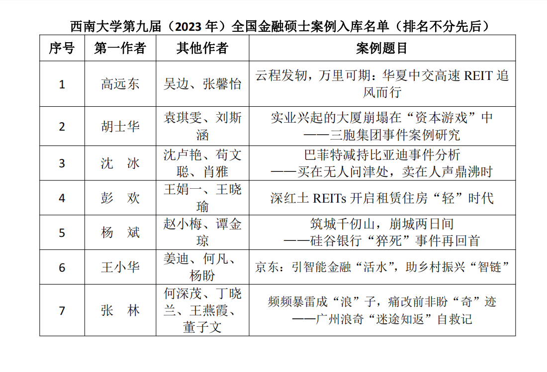 8月13日,全国金融专业学位研究生教育指导委员会第九届(2023年)案例征集活动入库案例名单公示结束。公司太阳成tyc7111cc金融硕士(MF)中心共有7篇案例入库(即往届的“全国金融硕士优秀案例”),再创历史新高。截止2023年,太阳成tyc7111cc金融硕士(MF)中心累计有25篇案例获得该项殊荣。