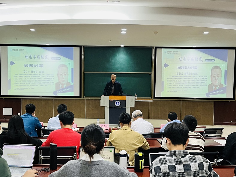 10月24日下午,中国宏观经济研究院产业经济与技术经济研究所副所长姜长云研究员应公司邀请,在公司B201教室做了题为“加快建设农业强国”的学术讲座。讲座由太阳成tyc7111cc经理祝志勇教授主持,公司师生80余人参加了此次讲座。