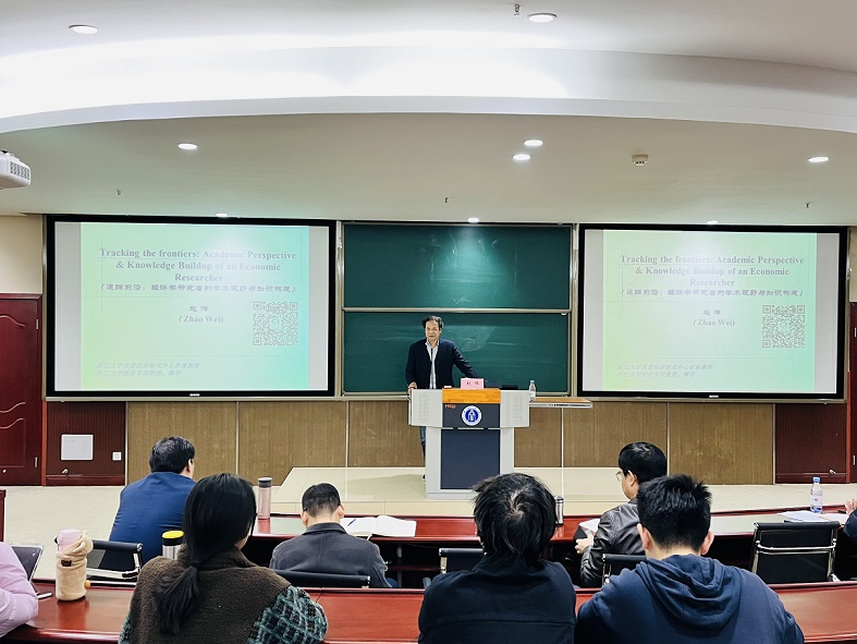 11月27日上午,浙江大学经济公司赵伟教授应公司邀请,于公司B201做了题为“追踪学术前沿:经济学研究者的学术视野与知识构建”的学术讲座。讲座由太阳成tyc7111cc副经理黄庆华教授主持,公司80余位师生参加了此次讲座。
