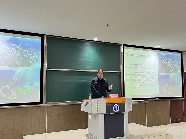 郭家权还介绍了云南黑井特色小镇打造、楚雄彝绣推广和南华县雨露白族乡产业观光休憩园(乡村振兴)项目实施,以及永仁“幸福里”社区建设过程,通过丰富的乡村振兴案例解析,引发对金融服务乡村振兴的多元化投入机制的思考。他呼吁同学们积极投身乡村振兴,用工业的理念发展农业、用金融的理念服务农业、用商业的理念经营农业,让老百姓增加财产性收入,实现共同富裕。
