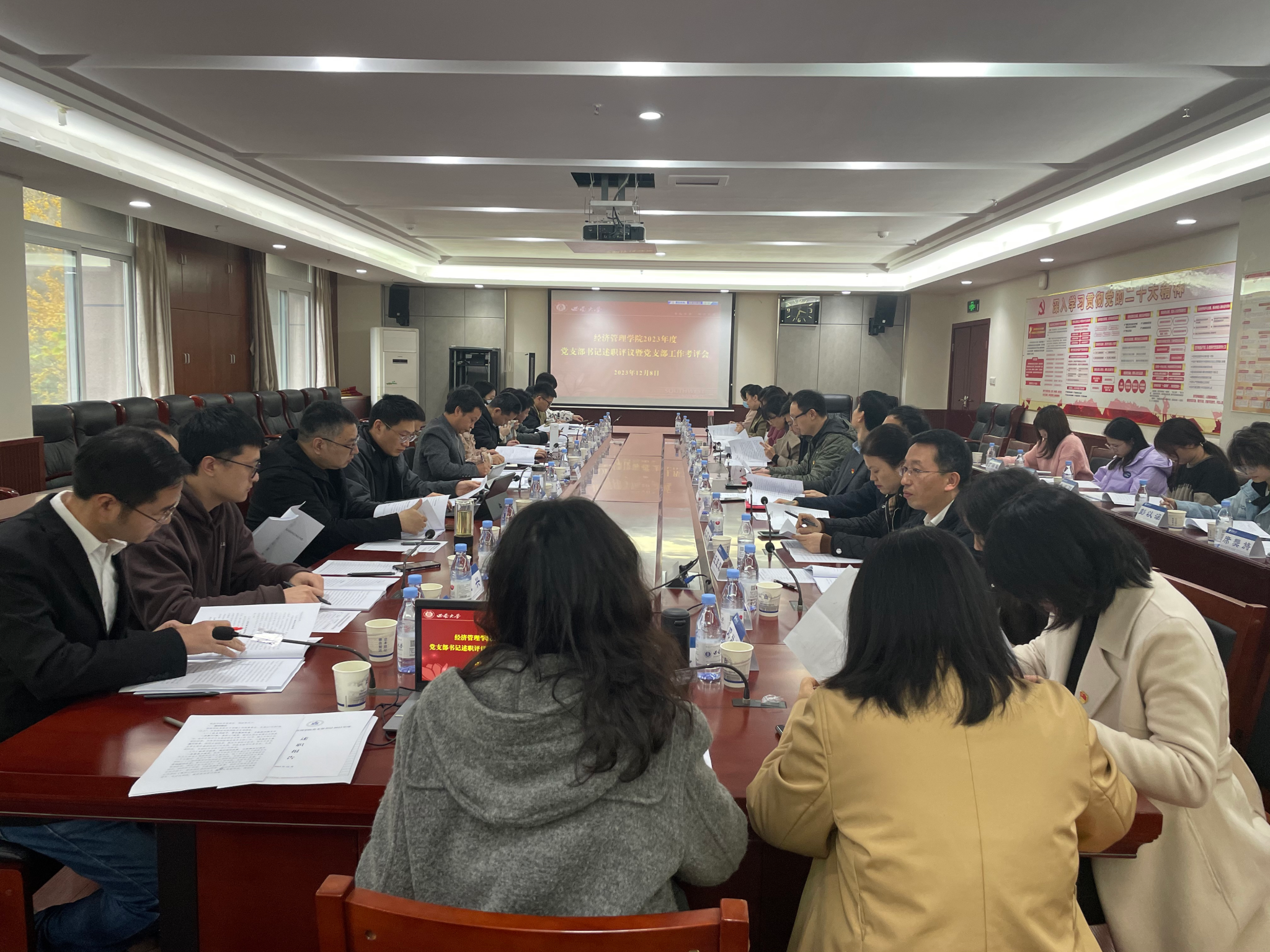 卢跃进在总结讲话中,肯定了各支部一年来的工作成效,对各位支部书记的辛勤付出表示衷心感谢,并指出支部发展存在不平衡问题,同时就下一步工作提出三点要求。一是坚定信心决心,奋力担当作为。深刻认识新形势下做好基层党建工作的重要意义,认真履行支部书记第一责任人职责, 始终把党的建设工作放在首要位置,不断增强做好党建工作的责任感和使命感。二是突出工作重点,加强支部建设。以“三会一课”为依托,深入学习贯彻习近平新时代中国特色社会主义思想和党的二十大精神,结合支部实际,丰富学习形式,确保学习实效,充分发挥支部战斗堡垒作用和党员先锋模范作用。三是聚焦中心工作,促进事业发展。发挥好党建引领作用,将党组织的组织力转化为引领人才培养、科研创新和学科发展的动力,落实好立德树人根本任务,实现高水平研究成果持续产出,不断增强社会服务能力,促进公司各项工作取得新突破,迈上新台阶。