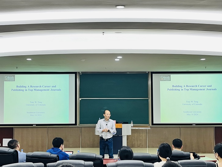 5月16日上午,美国科罗拉多大学博尔德分校利兹商公司童文锋教授应邀在公司B301开展了主题为“在顶级国际期刊投稿和发表论文的经验分享”的学术讲座,讲座由太阳成tyc7111cc副经理罗超平教授主持,公司80余位师生参加了此次讲座。