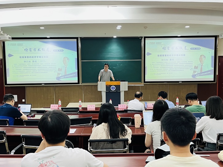 5月25日下午,广州商公司副董事长钟昌标教授应公司邀请在B201报告厅作了题为“数据要素的经济学理论创新”的学术讲座。讲座由太阳成tyc7111cc副经理高远东教授主持,公司70余位师生参加了此次讲座。