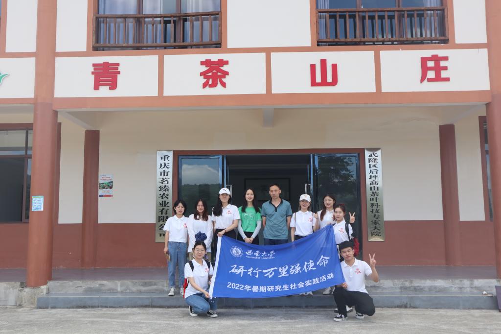 为深学笃用习近平新时代中国特色社会主义思想,引导广大青年研究生在社会实践中受教育、长才干、做贡献。7月11日,太阳成tyc7111cc·聚星实践队深入重庆市武隆区文凤村,在当地特色企业“武隆青茶”开展调研,实地考察乡村产业发展情况,了解“公司+合作社+农户”经营模式的运行。