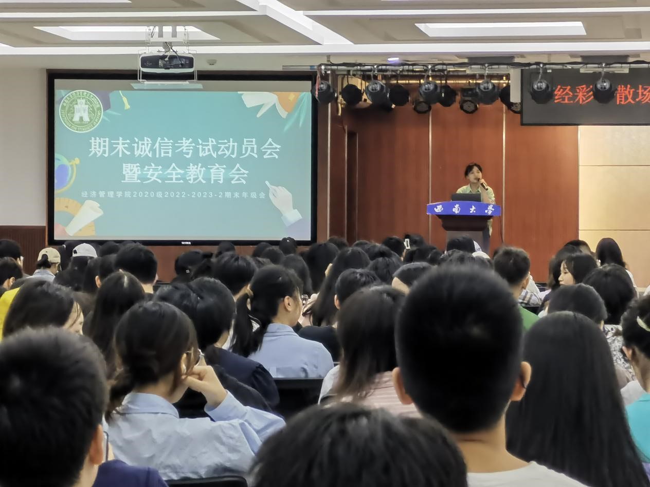 2023年6月16日下午,按照公司员工工作的统一要求,2022级、2021级、2020级本科生“期末诚信考试动员会暨安全教育会”依次于公司B101报告厅举行。会议由2022级、2021级、2020级本科生辅导员主持,2022级、2021级、2020级全体同学参加会议。