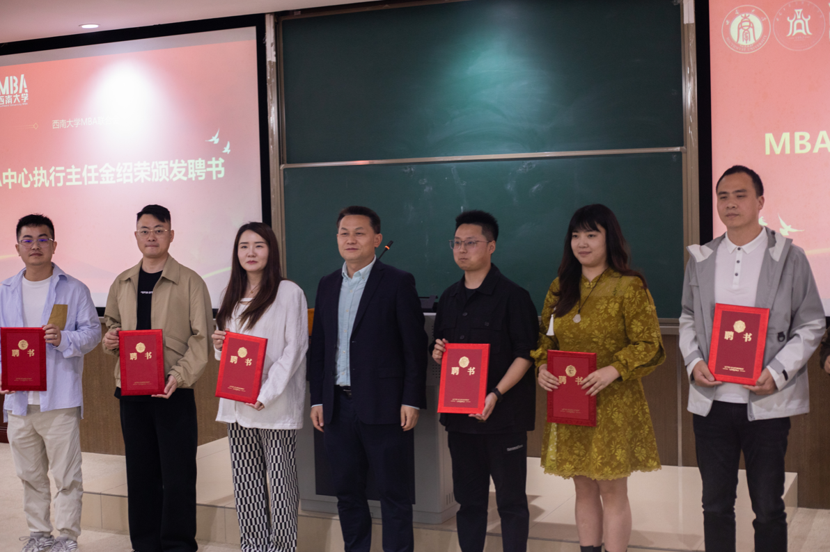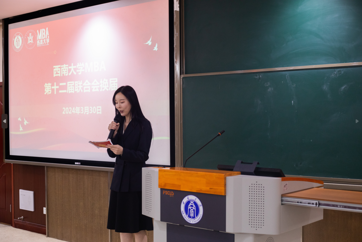 近日,太阳成tyc7111ccMBA联合会第十二届换届仪式在太阳成tyc7111ccB201室顺利举行,2023级含弘1班张淼同学担任仪式主持。MBA教育中心执行主任金绍荣、班主任朱丽燕、彭麟涵出席并见证了联合会换届交接与颁奖仪式,出席活动的还有第十二届MBA联合会全体成员。