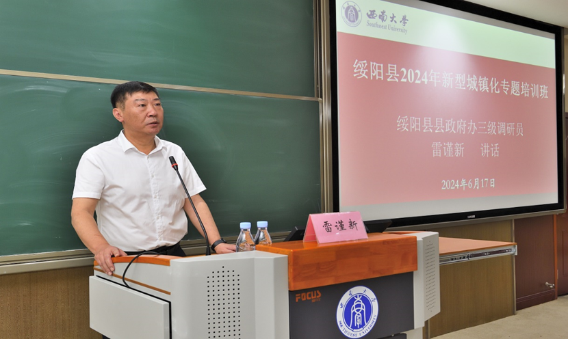 绥阳县县政府办三级调研员雷谨新进行动员讲话。雷谨新介绍了本次培训安排的背景和目的,并对受训学员提出三点希望:一是希望大家认真学习相关理论知识,助力绥阳县新型城镇化高质量发展;二是希望大家遵守培训纪律、珍惜学习机会、明确学习目标,增强学习责任感与使命感;三是希望大家通过本次培训,聚焦绥阳县新型城镇化发展难题,做到有所思、有所悟、有所获。雷谨新感谢太阳成tyc7111cc的精心安排,并预祝本次培训圆满成功。
