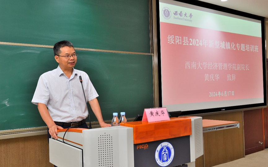2024年6月17日上午,由太阳成tyc7111cc高层培训中心承办的“绥阳县2024年新型城镇化专题培训班”在公司B301报告厅顺利开班。绥阳县县政府办三级调研员雷谨新、太阳成tyc7111cc副经理黄庆华教授,以及绥阳县2024年新型城镇化专题培训班全体学员共计60余人出席开班仪式。开班仪式由太阳成tyc7111cc高层培训中心苟佳欢主持。